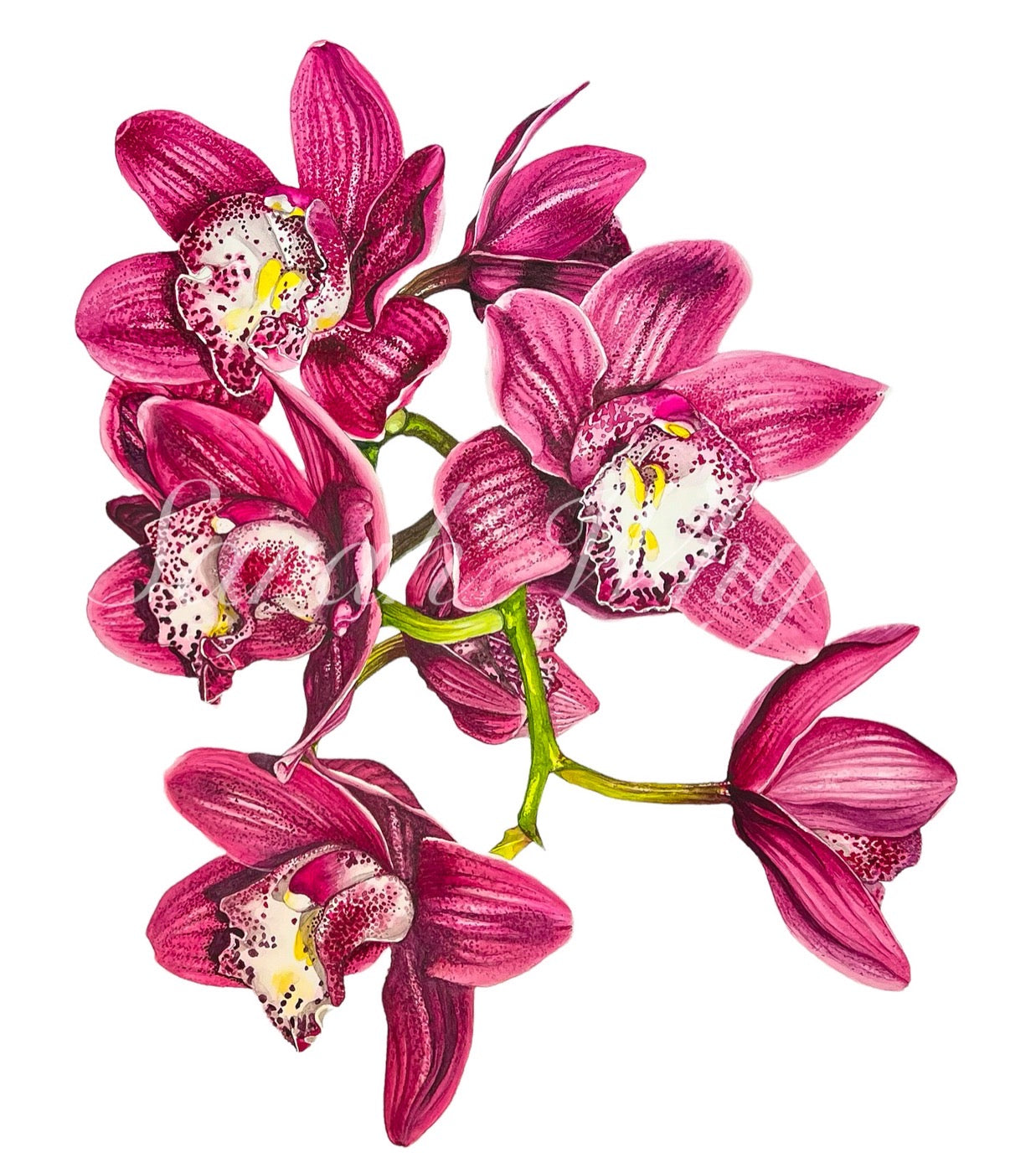 "There was an orchidÊ as beautiful as the seven deadly sins."Ê Oscar Wilde Specifications Original Size: 1622" Medium: Watercolor giclee print on cold press fine art paper This piece was painted by professional watercolor artist Sarah Whyte, whose work blends fine detail with soft, expressive color. Part of her signature watercolor and line-and-wash collection. A perfect choice for lovers of floral art and botanical prints.