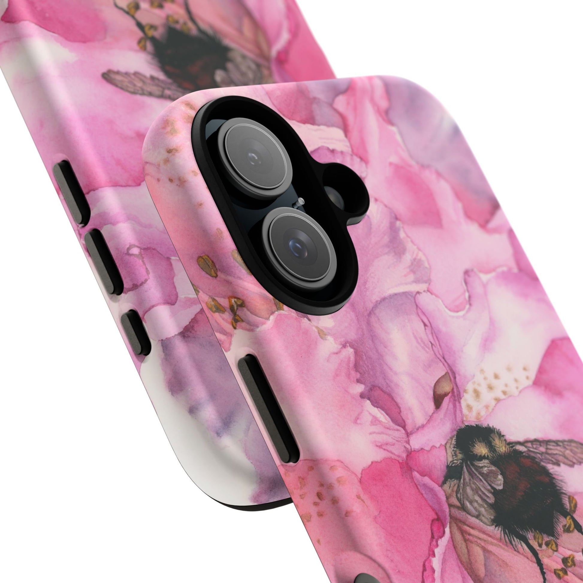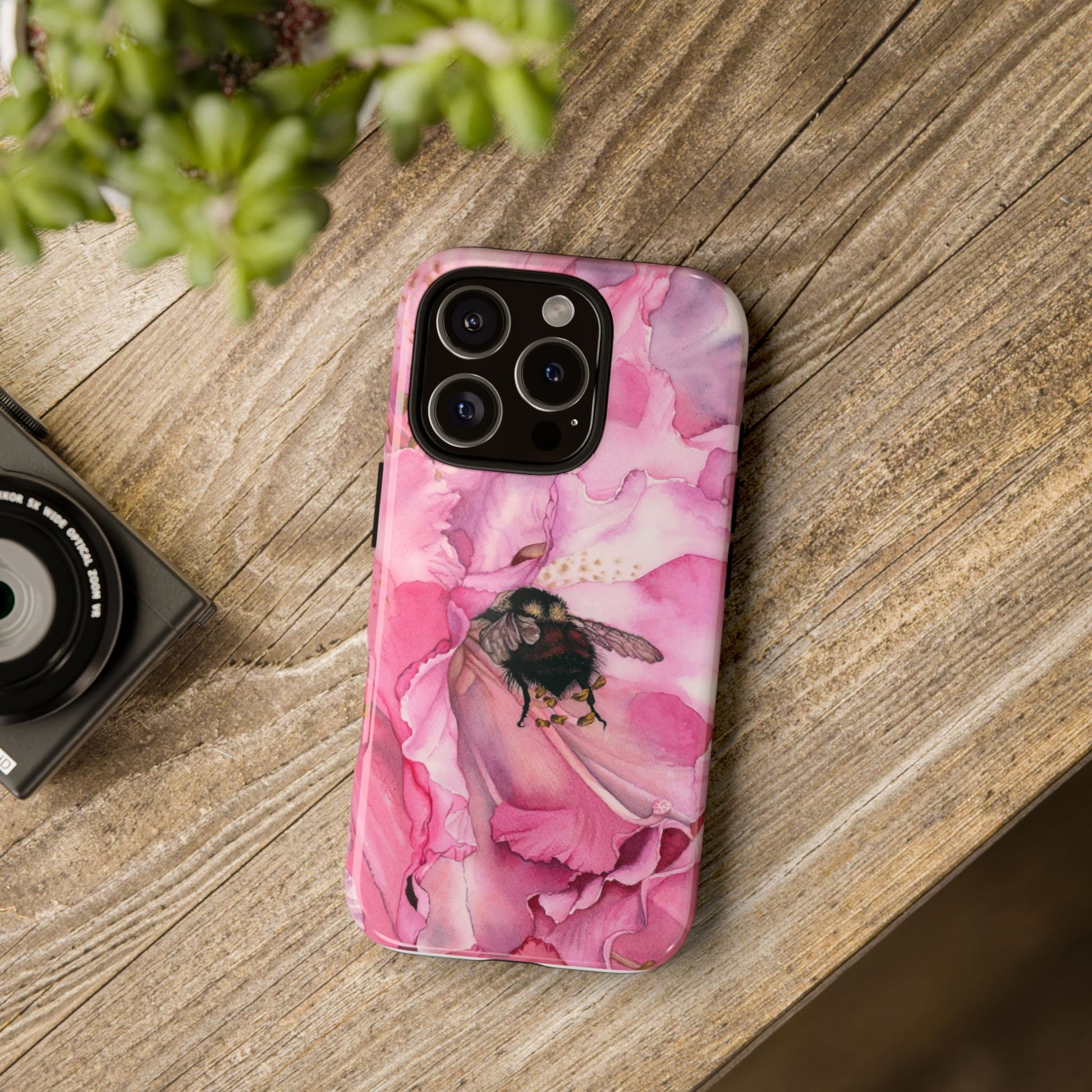 Floral Bee Phone Case - Tough and Stylish Protection - Floral Watercolor Print