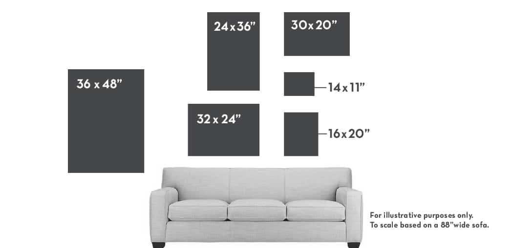 To help you visualize how each print size will look in your space, we’ve included a sizing guide with reference to a standard living room sofa. This makes it easier to choose the right size for your walls—whether you're filling a cozy nook or making a bold statement above the couch.