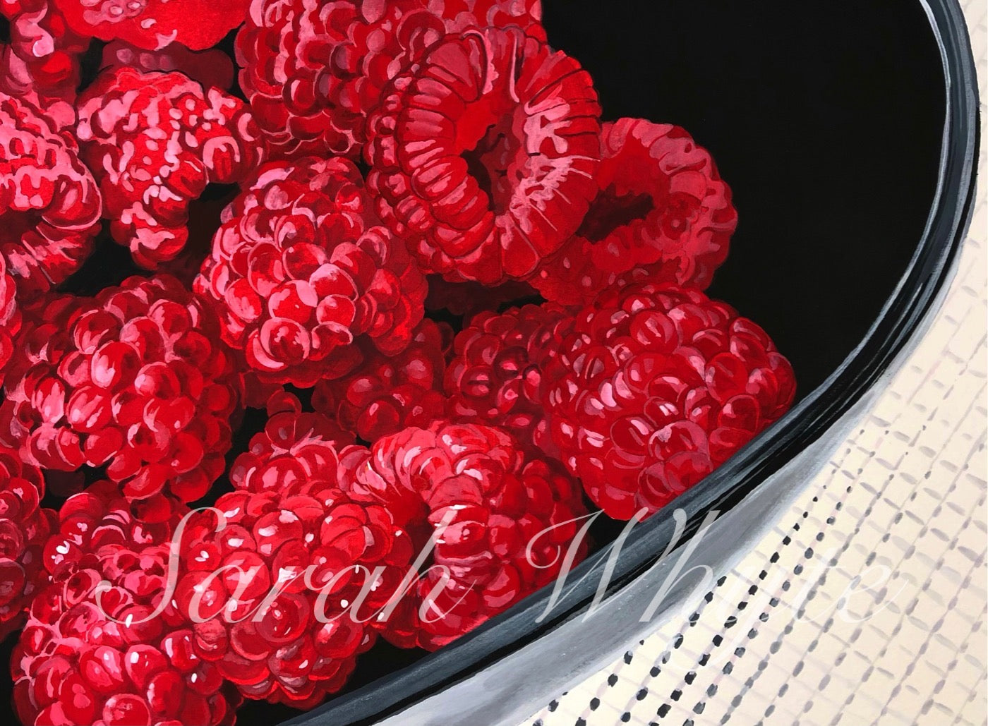 Raspberries in Black Bowl Print - Watercolor Art by Sarah Whyte