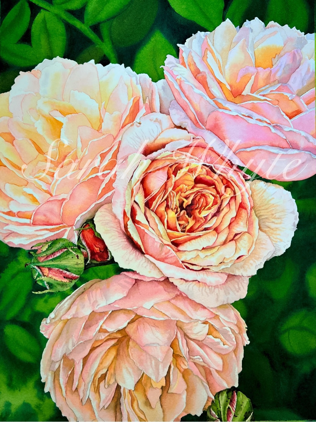 This piece was painted by professional watercolor artist Sarah Whyte, whose work blends fine detail with soft, expressive color. Part of her signature watercolor and line-and-wash collection.
